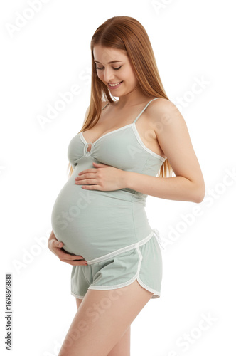 Anticipating new life a glowing pregnant woman tenderly cradles her baby bump with joy