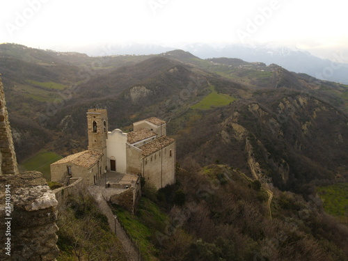 antico castello arroccato sulla montagna a strapiombo a Roccascalegna, un piccolo paese in abruzzo in Italia. mountain landscape.