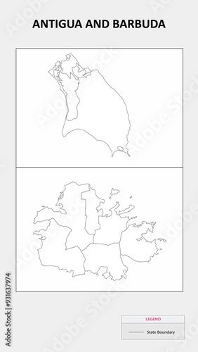 Antigua and Barbuda Map. State map of Antigua and Barbuda. Administrative map of Antigua and Barbuda with states names in outline.