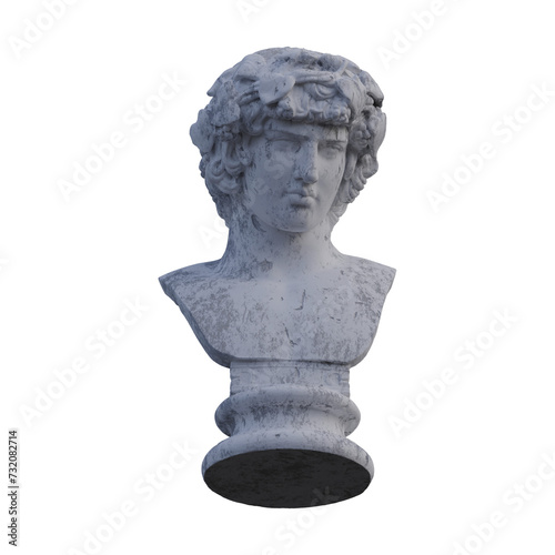 Antinous statue, 3d renders, isolated, perfect for your design