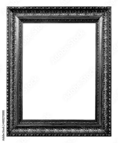 Antique black and silver wooden frame isolated on white background.