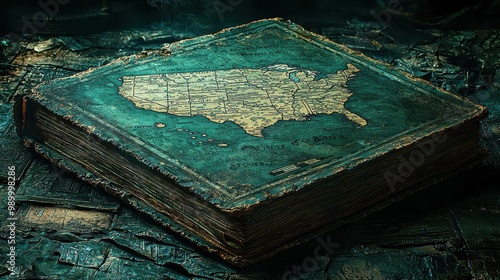 Antique Book with USA Map Cover Aged and Worn Vintage Style
