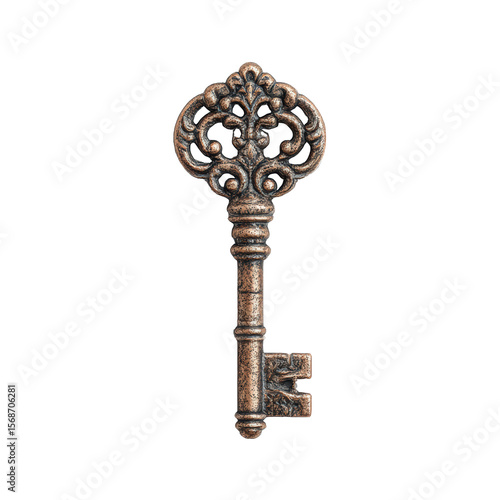 Antique Bronze Skeleton Key Isolated on White Background Symbolizing Security, History, and Stylish Decorative Elements