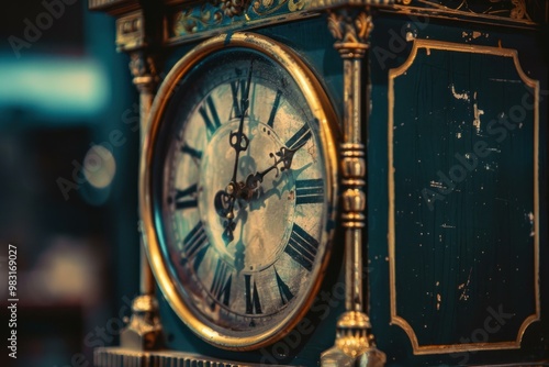 Antique clock showing the passage of time with roman numerals in a vintage interior
