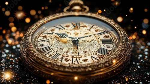 Antique Gold Pocket Watch Glimmering Festive Lights