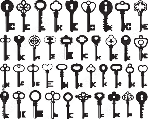 Antique Key Collection Featuring Ornate and Vintage Designs for Decoration