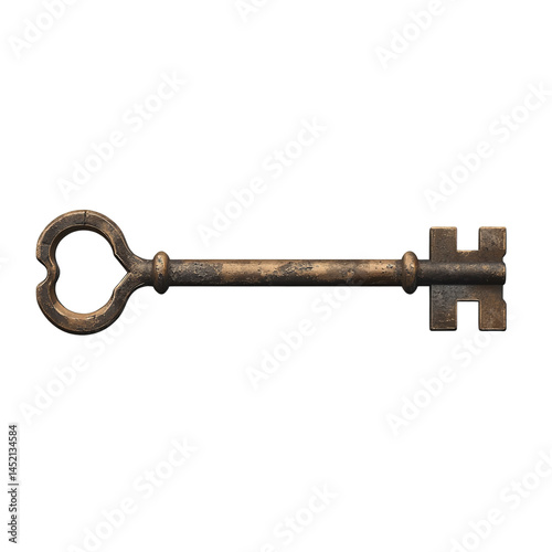 Antique metallic key isolated on a dark backdrop evokes mystery and intrigue