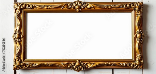 Antique ornate gold picture frame, distressed wood, shabby chic style, ornate frame, empty frame