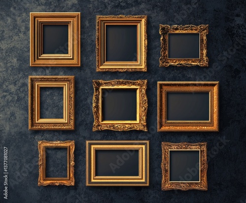 Antique picture frames on dark background