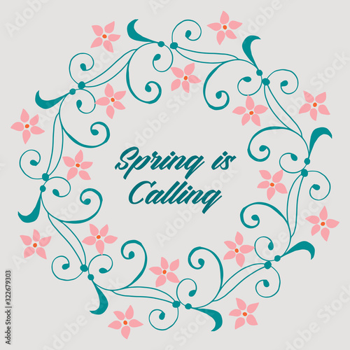 Antique spring calling greeting card design, with leaf and floral frame decor. Vector