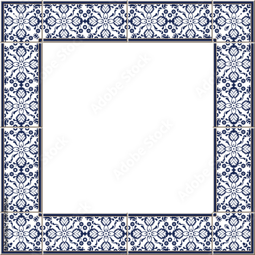 Antique square tile frame botanic garden vintage pattern nature plant flower