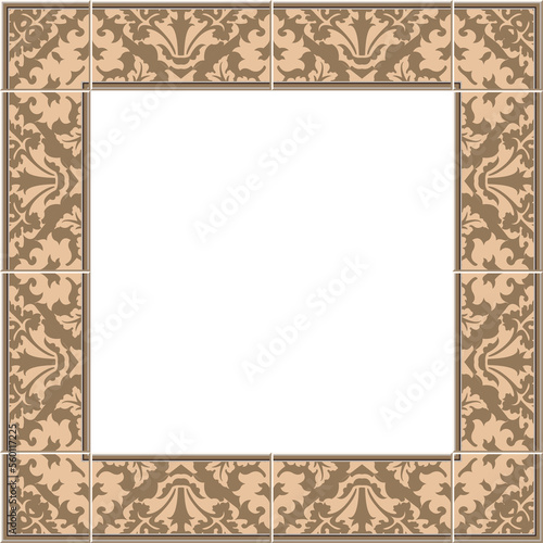 Antique square tile frame botanic garden vintage pattern plant kaleidoscope