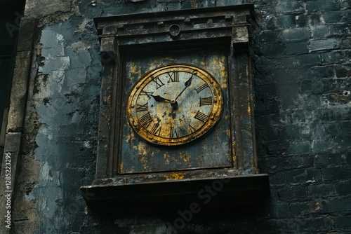 Antique Wall Clock on Dilapidated Brick Wall with Weathered Finish