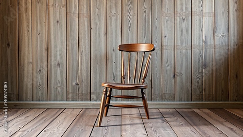 Antique Wooden Chair in Empty Room - Weathered Wood Detail