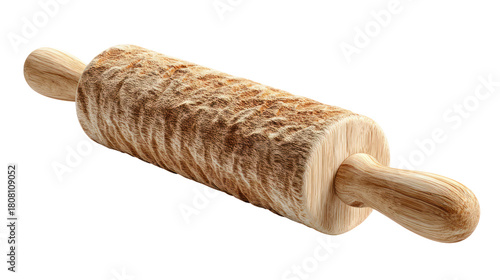 Antique wooden rolling pin with textured surface isolated on transparent background