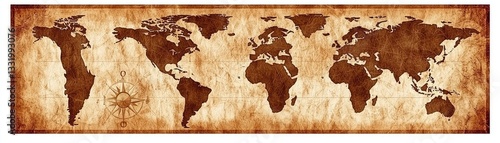 Antique World Map on Parchment Paper Background. Decoration or Education