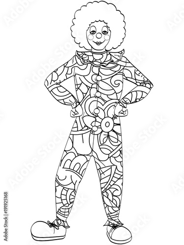 Anti-stress coloring bookclown vector. Theater, circus, a woman in a jester costume.