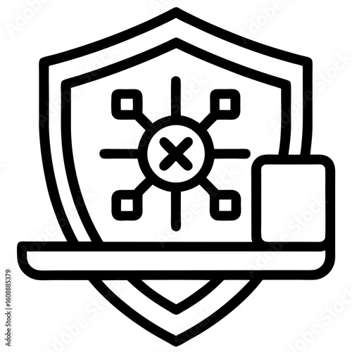 Antivirus Software Outline Icon – Black Vector for Cybersecurity Protection