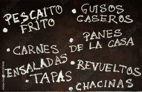 Anuncio de tapas en un bar, Sevilla, tapeo, Andalucía, España
