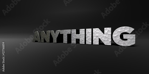 ANYTHING - hammered metal finish text on black studio - 3D rendered royalty free stock photo. This image can be used for an online website banner ad or a print postcard.