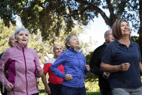 Anziana signora con i capelli grigi fa attività di Jogging in mezzo ad un parco