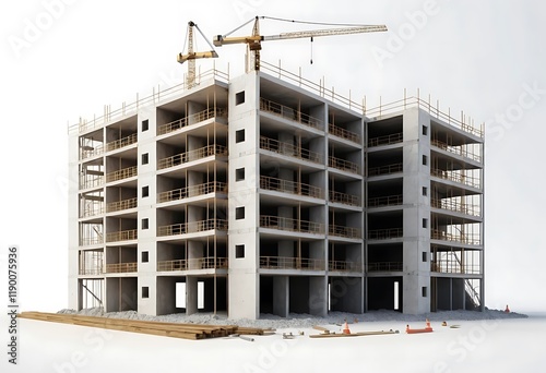 Apartment Building Under Construction With Crane