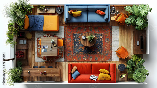 Apartment Interior Design with Colorful Furniture and Plants