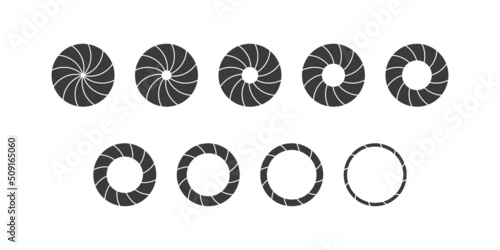Aperture lens vector icon set. Camera shutter symbol collection. Open and close diaphragm.