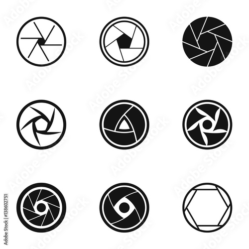 Aperture of camera icons set, simple style