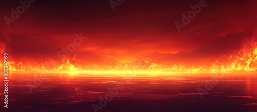 Apocalyptic Fiery Landscape Depicting Cataclysmic Destruction and Doomsday Devastation Dramatic Hellscape Scene with Raging Fires Billowing Smoke and Ominous Red Skies Signaling the End of the World
