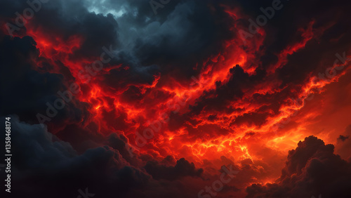 Apocalyptic Fiery Sky with Dramatic Storm Clouds – Concept of Chaos, Power, and Intense Atmosphere