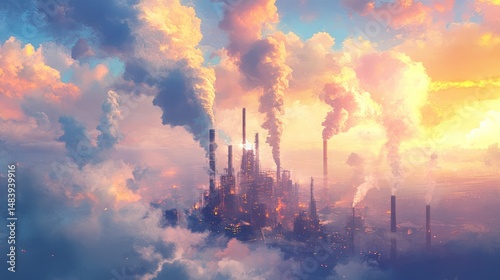 Apocalyptic Sunset: Industrial City in the Clouds