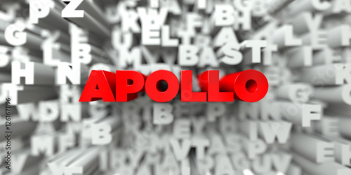 APOLLO - Red text on typography background - 3D rendered royalty free stock image. This image can be used for an online website banner ad or a print postcard.