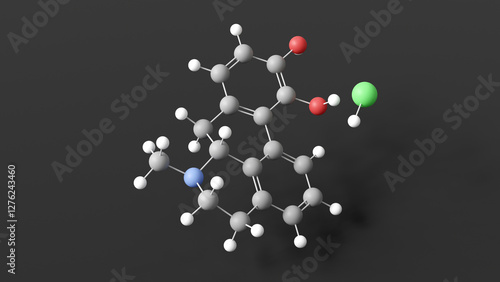 apomorphine hydrochloride molecule 3d, molecular structure, ball and stick model, structural chemical formula antiparkinsonian agent