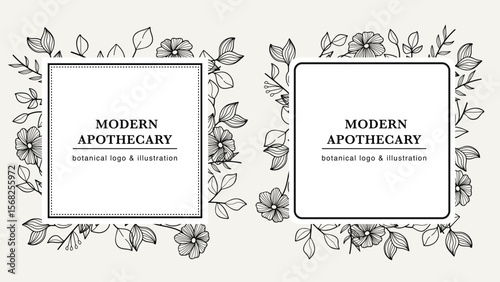 Apothecary Logo. Hand drawn botanical illustration with various plants and herbs illustration