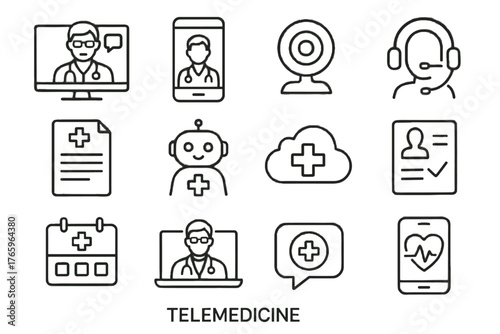 App smartphone vector telemedicine cloud health headset icon medical patient set ai