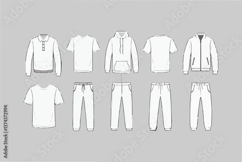 Apparel Set Mockups: Shirts, Hoodies, Pants for Fashion Design Templates