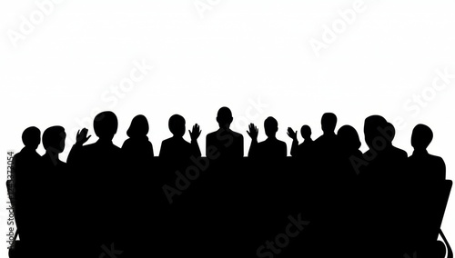 Applause, audience, conference, silhouettes, meeting, event, celebration, white, background, illustration