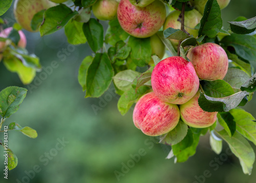 Apple background. Fresh apples from the orchard. Apple harvest ready to be picked from the orchard. Healthy to eat.