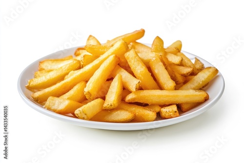 Apple cut fries on plate, isolated, white background. AI generated illustration.