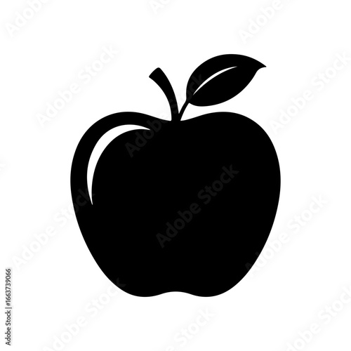 Apple fruit silhouette simple black vector icon with leaf svg vector file, apple layered vector file