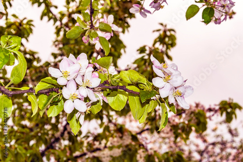 Apple tree flowers on a branch close-up
