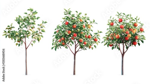 Apple tree growth stages, orchard, white background, website design