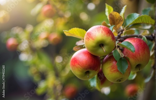 Apples on a tree, bokeh defocused background