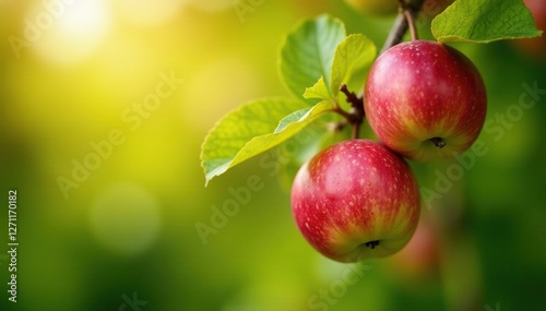 Apples ripening on the tree in late summer sunlight, branches, summer