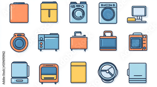 Appliance icons set vector illustration washing machine oven microwave fridge and other kitchen appliances