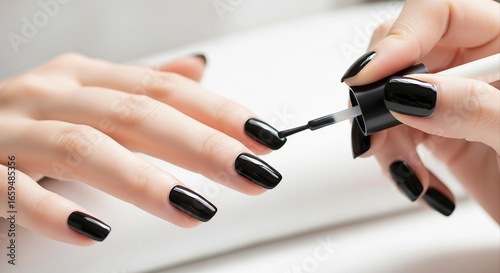 Applying Black Nail Polish Manicure | Close-up Hand Applying Nail Polish for Beauty, Fashion, and Cosmetics Marketing