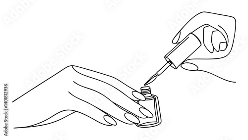Applying Nail Polish Line Art Illustration