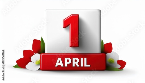 April 1st Cube Calendar Design. Bold Red and White Iconic Block Representation Perfect for April Fools' Day Promotions, Event Announcements, Prank Ideas, or Creative Social Media Campaigns
