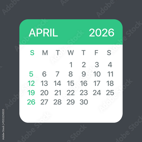 April 2026 Calendar Leaf - Vector template graphic Illustration